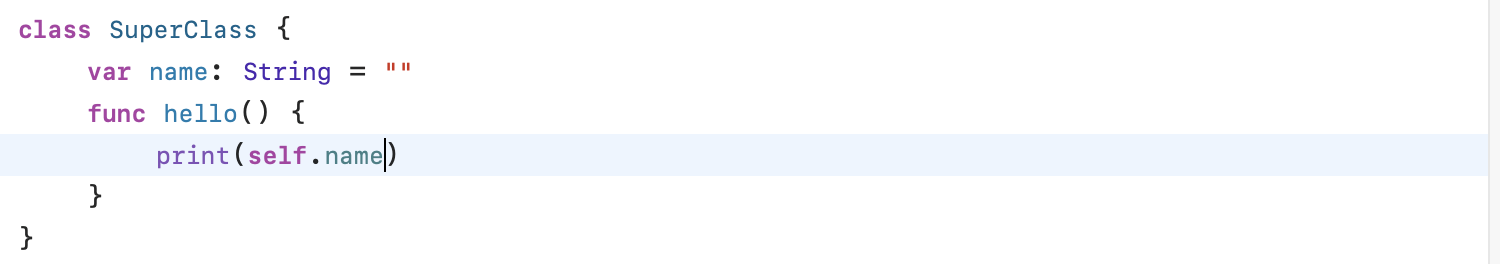 위 예시같은 경우, 이니셜라이저 내부에 있는 name은 지역변수, 매개변수, 인스턴스 프로퍼티 순으로 무엇을 지칭하는지 찾습니다. 이럴 때, 바로 인스턴스 프로퍼티로 지칭해주기 위해서 사용됩니다~