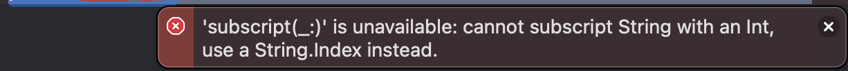 'subscript(_:)' is unavailable: cannot subscript String with an Int, use a String.Index instead.